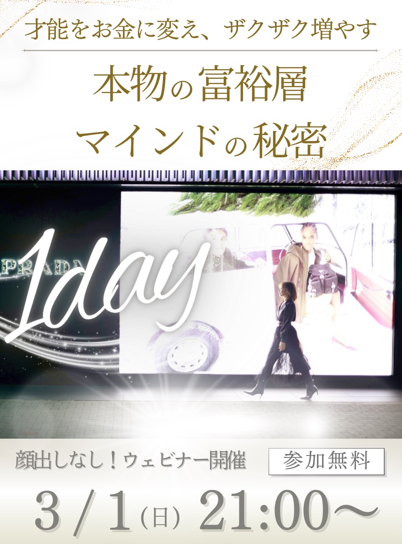 【1DAY】才能をお金に変え、 ザクザク増やす。 本物の富裕層マインドの秘密